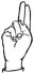 На ћирилици написано АНГЕЛИНА ЂАКОВАЦ састоји се из 15 слова [?]. Исписано ћириличном једноручном азбуком за глувонеме: